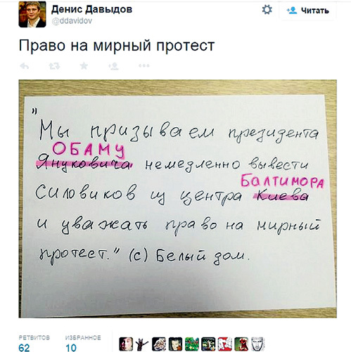 Эти события напомнили, как при похожих обстоятельствах на Украине действовали сами США. Картинки, которыми в Интернете троллят госдеп, по-настоящему уморительны. Соцсети полны записей вроде этих: